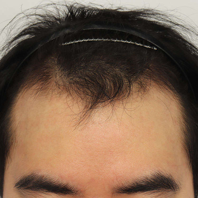 이마가 M자로 후퇴되었고, 모발이 얇아지고 있습니다.